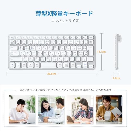 iClever ワイヤレスキーボード DK02はわずか327gの軽量設計で、28.5×11.7×2.2cmのコンパクトサイズを実現。
