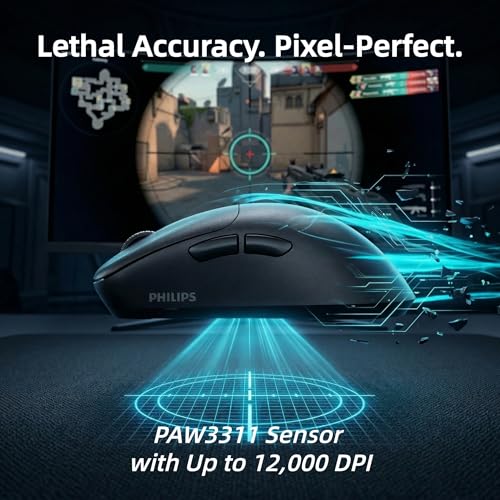 フィリップスEVNIAゲーミングマウスSPK9418は、高精度12000DPIセンサーと1ms応答速度の安心感を持ちつつ、ワイヤレスの快適さと有線の安定性を両立させたモデルです。