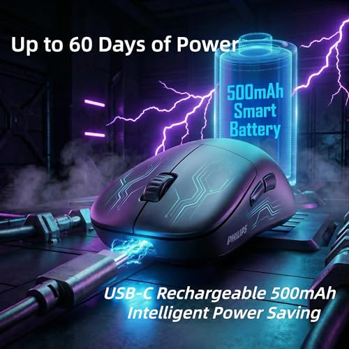 フィリップス ゲーミングマウス 無線 マウス 超軽量 52g 3モード接続 bluetooth/2.4GHz/ USB-C有線 1ms応答速度 12000DPI 6段階調節 ワイヤレス Type-C充電式 6個プログラムボタン エルゴノミクス fps用 低遅延 高耐久 PC Windows Mac ゲームと仕事両用 Philips Evnia Gaming Mouse SPK9418 中間 画像