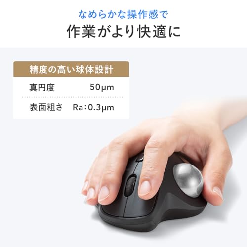 サンワダイレクトの34mm交換用トラックボールは、真円度50μm、表面粗さは0.3μmという高い精度で製造されており、なめらかな動きを実現しています。