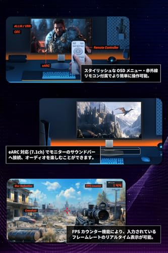 ゲーム機、PC、音響機器を組み合わせた環境でも高いパフォーマンスを発揮し、没入感あふれる映像体験と使いやすさを両立させています。